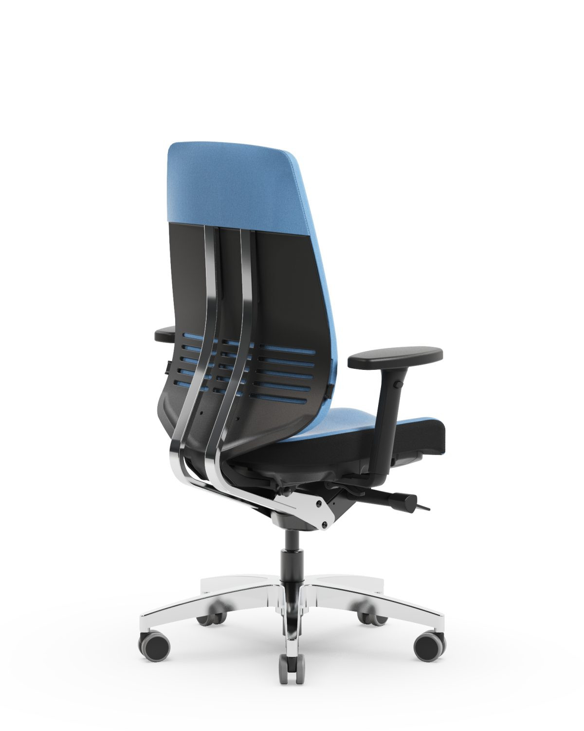 La estética del modelo está directamente enfocada a transmitir las cualidades ergonómicas del mismo, sin olvidar la posibilidad de poder instalarla en todo tiempo de ambientes gracias a su gran variedad de acabados. Además de los sistemas y opciones de regulación convencionales, tiene una serie de características que la hacen única.