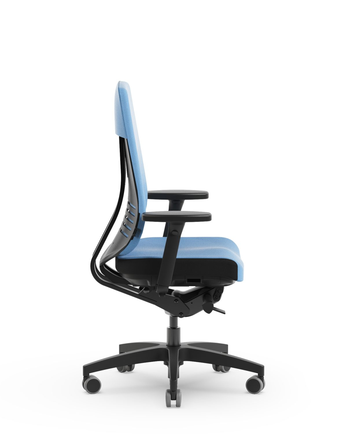 Incorpora un mecanismo sincronizado avanzado, con regulación lateral de la tensión de inclinación. Además, su sistema de cuadrilátero articulado permite que el asiento al inclinarse lo haga respecto a un un eje de giro virtual situado en las rodillas. Esto hace que la distancia de las rodillas al suelo permanezca constante.