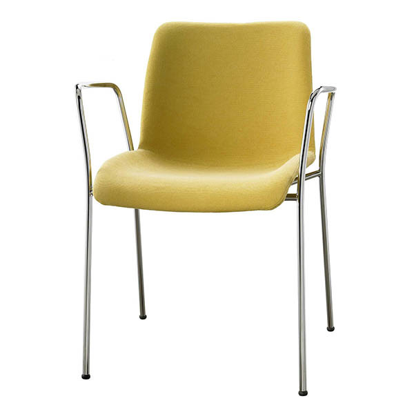 La chaise OLA est une chaise légère avecdes variantes de quatre pieds (empilables), tournante, luge et banc , avec la possibilité de rembourrer dans de multiples tissus.
