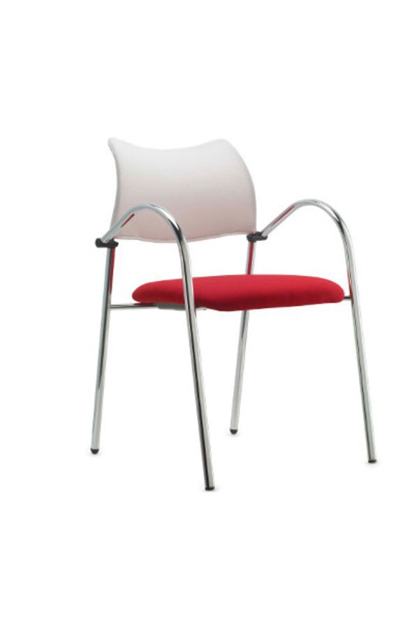 Con el respaldo inyectado se mantiene la comodidad del mismo ya que con nuestro sistema de fabricación, el respaldo mantiene la flexibilidad y capacidad de adaptación a la espalda del usuario. Existe la posibilidad de tapizar en varios colores el asiento y el respaldo. Dispone de armazones de cuatro patas con brazos y sin brazos o de patín y de acabados en pintura negra o gris plata o cromado.
